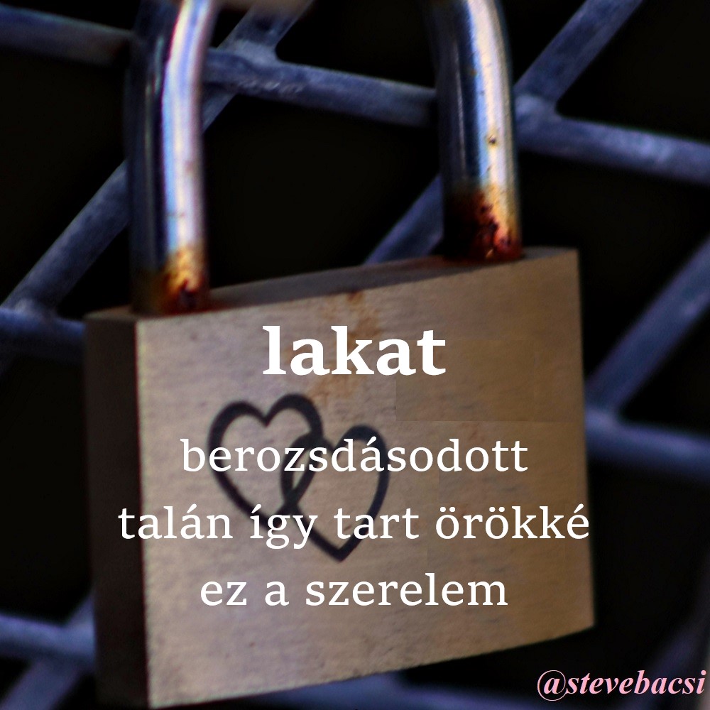 lakat By Steve bacsi on 2022 április 12 • ( Hozzászólás ) berozsdásodotttalán így tart örökkéez a szerelem Megosztás: Click to share on X(Új ablakban nyílik meg) X Facebookon való megosztáshoz kattintás ide.(Új ablakban nyílik meg) Facebook Tetszik Betöltés... Kapcsolódó bejegyzések Kategóriák:Haiku Vers Steve bacsi Versek, slamek, rövid prózák, fotók.
